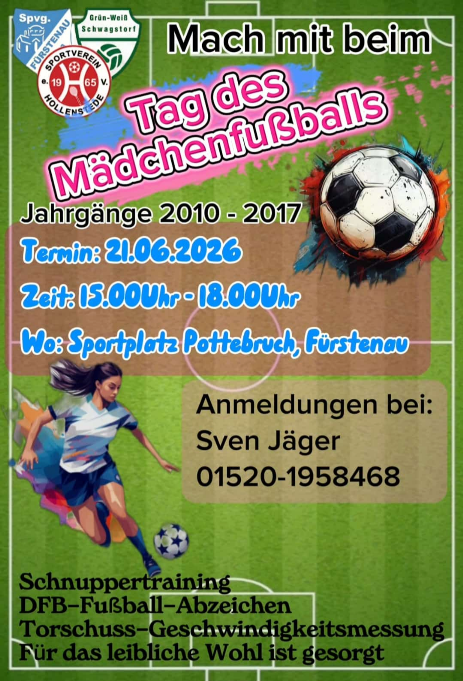 Am 25.06. um 19:00 Uhr fand das Kreispokalendspiel der B-Mädchen zwischen der JSG Hollenstede/Fürstenau/Schwagstorf/Schlichthorst und dem TuS Eintracht Rulle statt. Bilder und wie es ausgegangen ist siehe HIER
