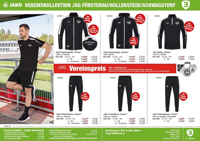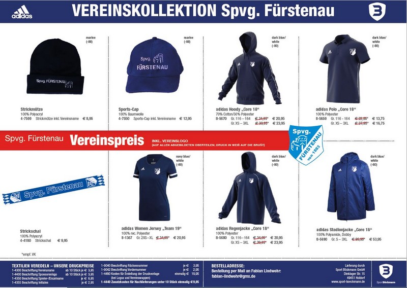 Ausserdem bietet Sport Böckmann in Holdorf uns eine Vereinskollektion mit individueller Bedruckung mit Vereinswappen, Vereinsname und Vordernummer zu Sonderkonditionen an.